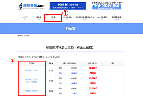 ※分析項目がお決まりの方は、ご注文ページ及びご注文バナーからお進み下さい。